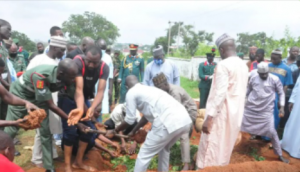 Hassan Ahmed, a Major-General of the Nigerian Army, who was murdered in Abuja on Thursday night, has been buried at Lungi Barracks Cemetery, Abuja.