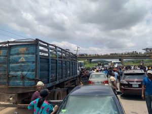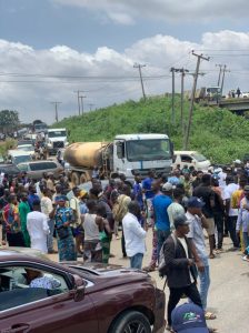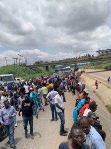 The protest took place just after the Sagamu Interchange section of the expressway, towards Lagos.