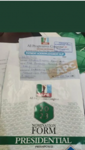 Minister of State for Education, Chukwuemeka Nwajiuba, Wednesday in Abuja, became the first of many aspirants to obtain copies of the Nomination and Expression of Interest forms to vie for the Presidential ticket of the All Progressives Congress.