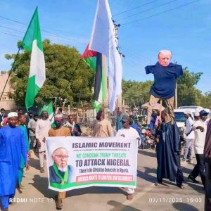 Members of the sect marched across major roads in Kano city, carried placards and banners rejecting Trump’s claim that Christians were being targeted in a genocide in Nigeria.