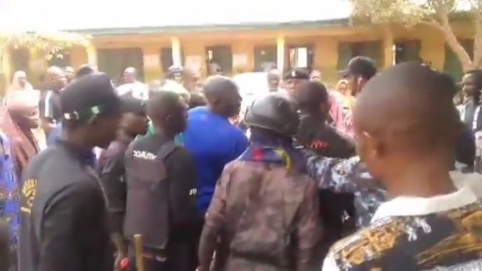 The lady clad in black shirt and red trouser with white scarf, was apprehended at Polling Unit 001 in Kabusa Primary School.