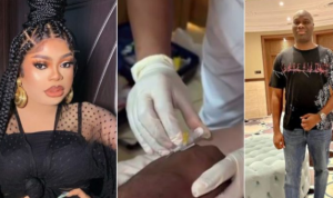 Mompha took to his Instagram page to share a video of himself on a drip and a medical practitioner attending to him while lying on the bed.