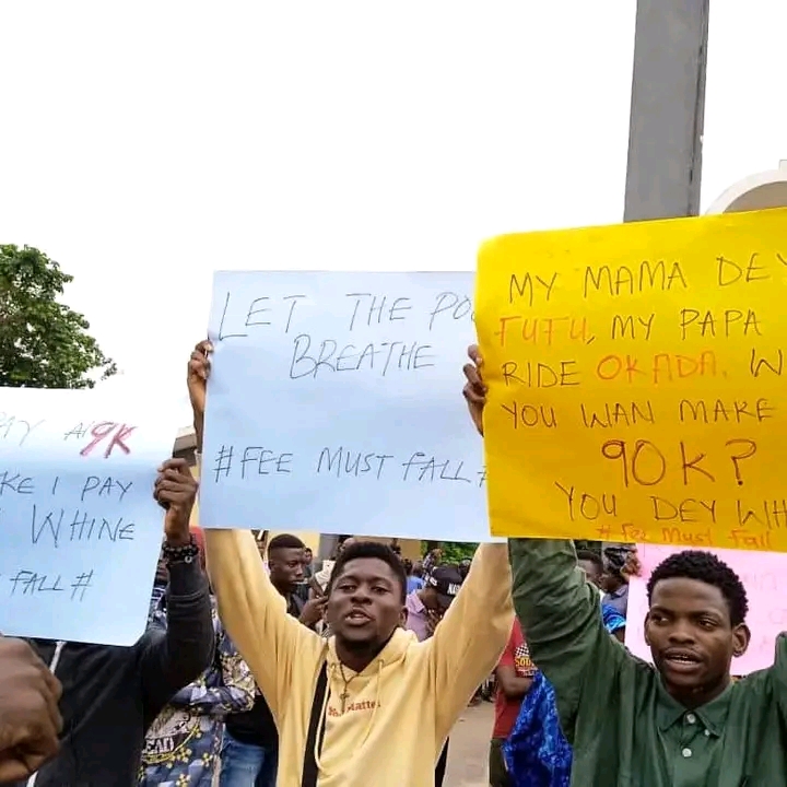 They also bear placards with different inscriptions such as, “Education is bleeding, no need for celebrating independence”, “Let the Poor Breath, Fees must fall”, “My Parents are poor, can’t afford exorbitant fees”, among others.