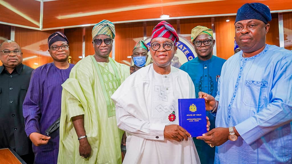 The Governor of Osun, Adegboyega Oyetola, on Wednesday signed the year 2022 Appropriation Bill into Law.