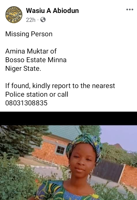 The Niger State Police Command has declared a young girl, Amina Mukta, missing in Minna.