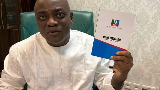 A member of the House of Representatives, Oluwole Oke, has been spotted with the All Progressives Congress (APC) Constitution.