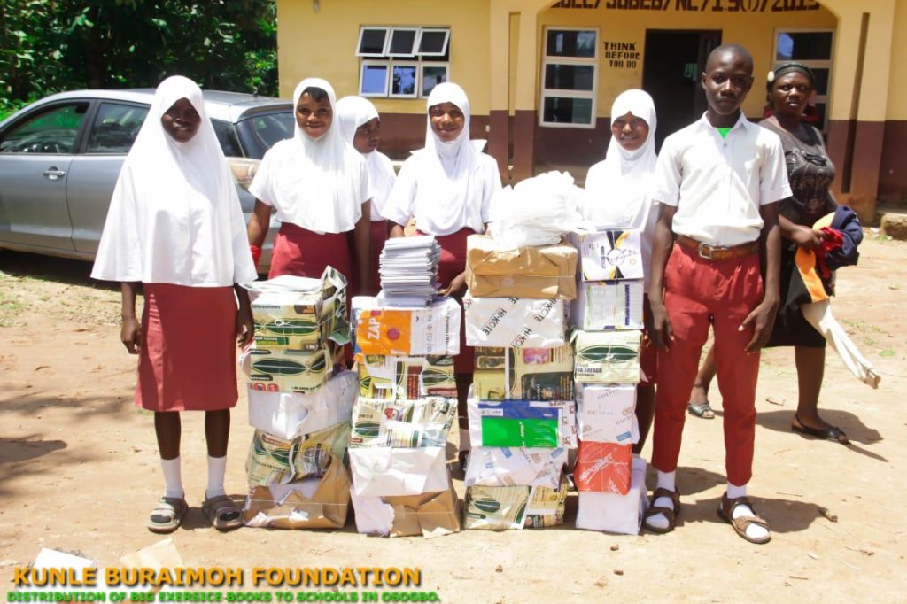 During the event, representatives from the Kunle Buraimoh Foundation visited Nawarudeen Grammar School in Oke Baale, Salvation Army Primary School in Isale Aro, and Adenle Grammar School in Ayetoro, where they distributed five exercise books to each student.