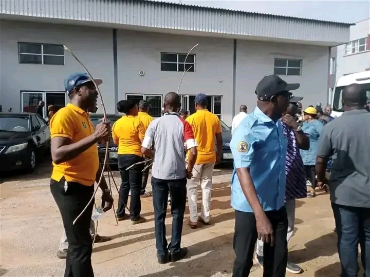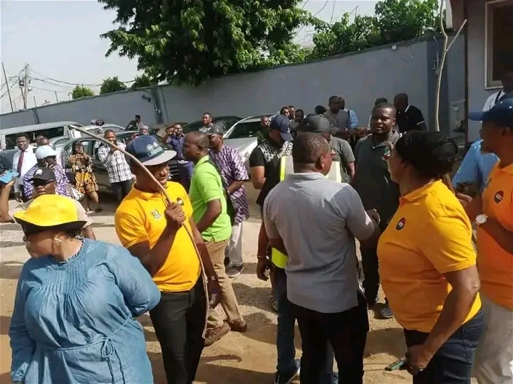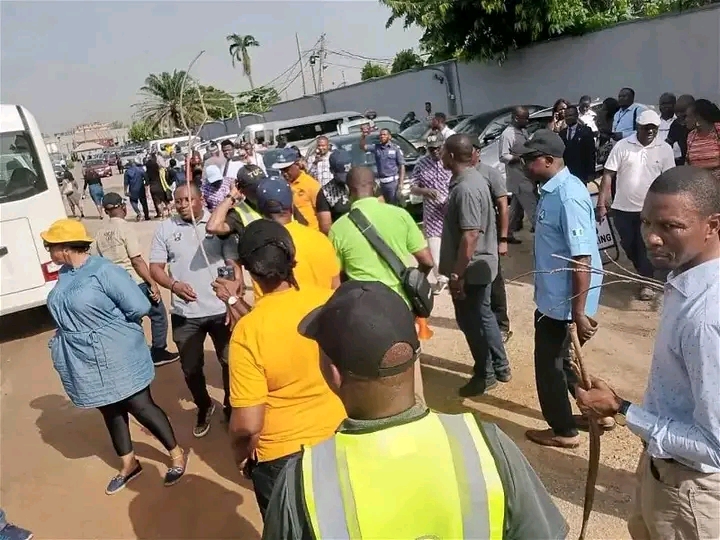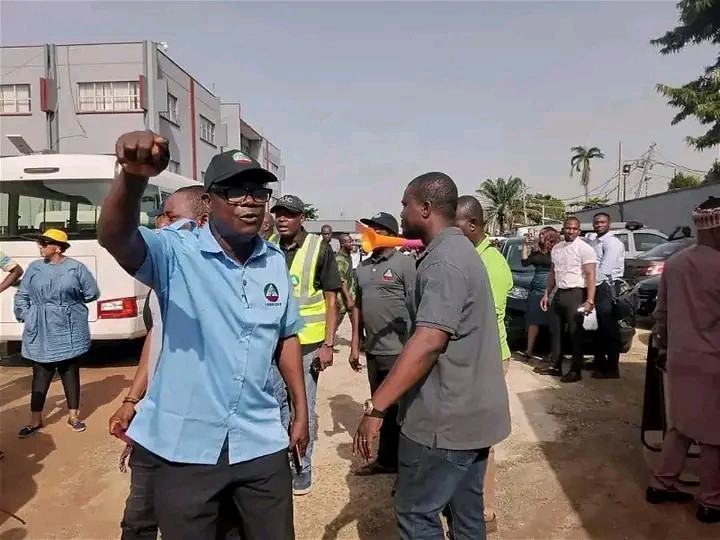 The labour leaders, who were enforcing the nationwide strike over minimum wage, chased staff out of the Agidingbi, Ikeja, office.