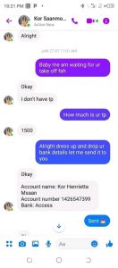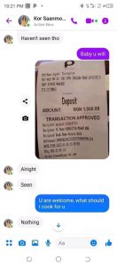 Terkula latter contacted the lady, the conversation didn’t go well but the lady ask for his account number to refund the said money. Terkula who felt cheated took to Facebook to call out the lady. He exposed the conversation between him and the lady, he also displayed the POS receipt confirming his transfer to the lady.