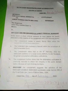 Few days later, the said lady took Terkula to court to seek redress for deformation