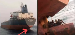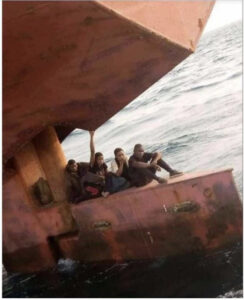 A video which has gone viral on social media, captured moment some stowaways were nabbed while hiding at the rudder of a ship heading for spain.