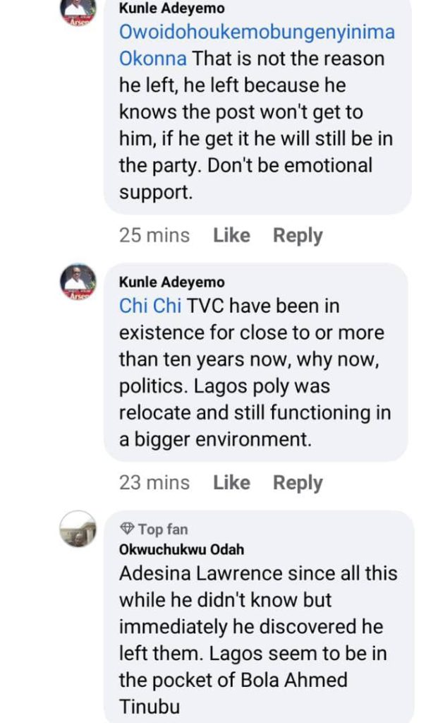 He said, “Where we are sitting right now, this TVC premises used to be a Lagos State Polytechnic property. Even if you tidy up everything and it is legal to sell it to yourself, is it morally right?“