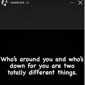 Reacting, Teebillz in a cryptic message via his Instagram story warned that people should be wary of the sort of company they keep around them.