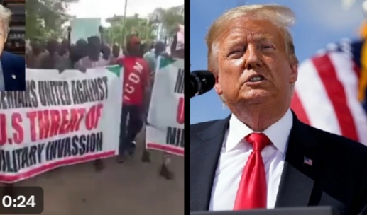 The protest comes shortly after former U.S. President Donald Trump reportedly threatened to take action, including possible military intervention, against Nigeria if the government fails to stop what he described as the “killing of Christians” by Islamist militants.