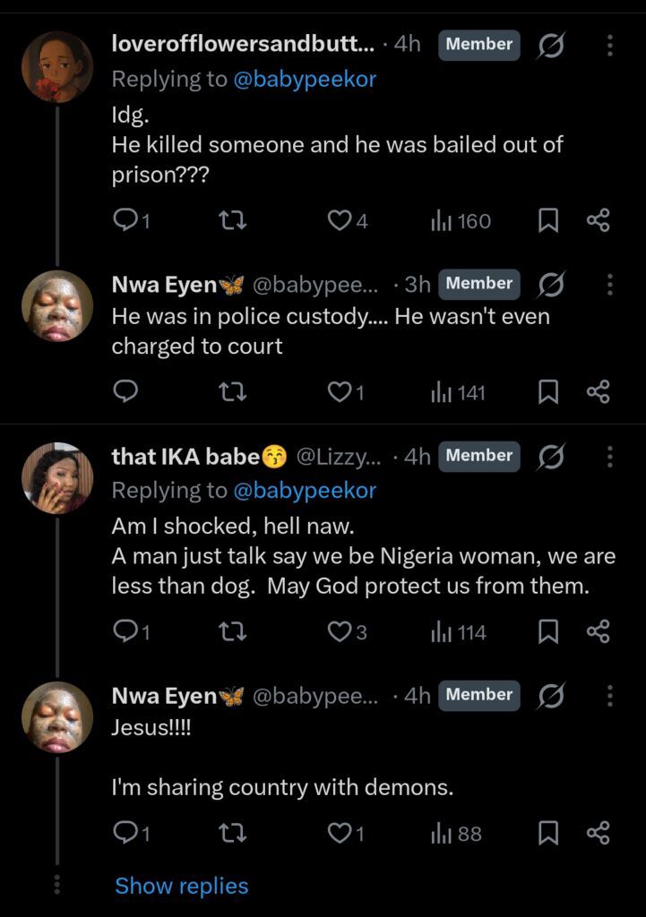 @Lizzy: “Am I shocked, hell naw. A man just talk say we be Nigeria woman, we are less than dog. May God protect us from them.”