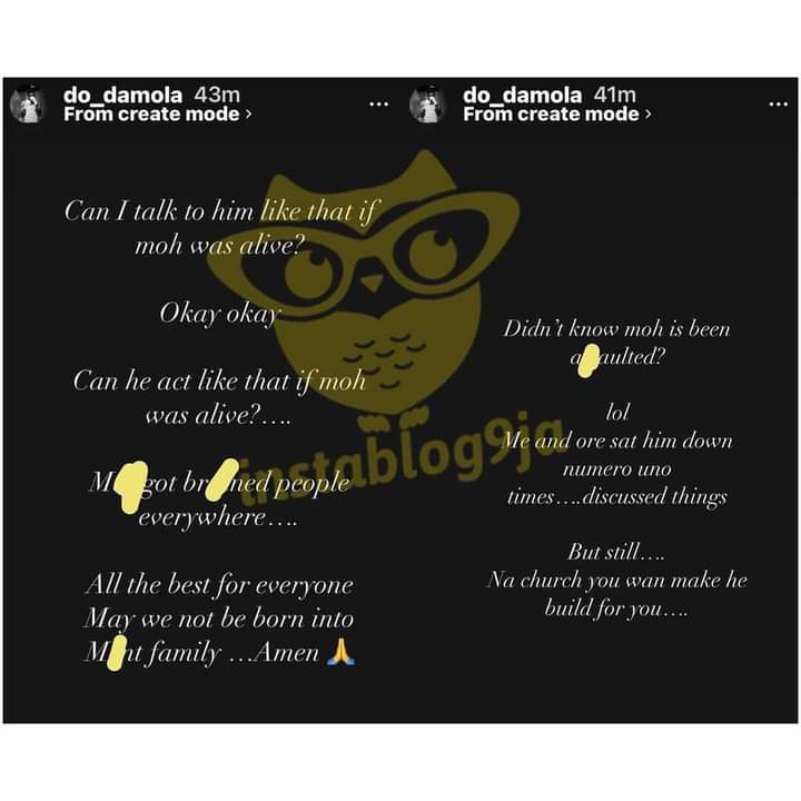 Damola, a former associate of Mohbad, has taken to his Instastories to tackle the late singer’s dad.