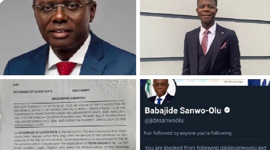 Human rights lawyer, Festus Ogun, has filed a lawsuit against Lagos State Governor, Babajide Sanwo-Olu, at the Federal High Court in Lagos for allegedly violating his fundamental rights by blocking him on his verified X (formerly Twitter) account.