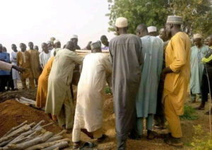 “The remains of a newly wedded Young man being laid to rest in Gwashi, He was killed by bandits while protecting his newly weded wife from being raped by the Bandits on her first day in her matrimonial home.”