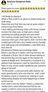 Ebere’s death has started a conversation about domestic violence on Facebook.
