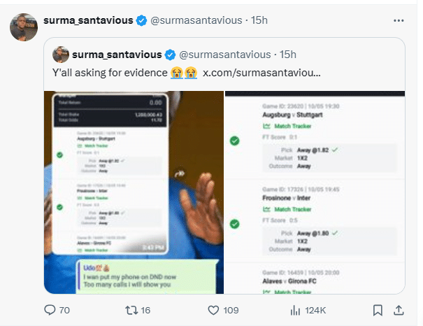 @bimsyde penned: “This boi get mind oooo….1.2m play bet and he still get mind carry 2odds. Your brother no go graduate ooo”