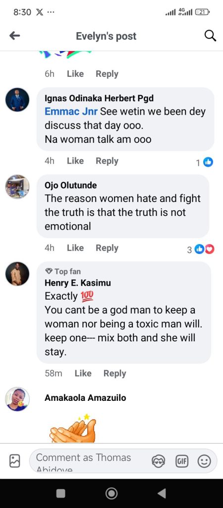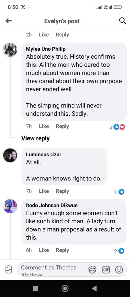 A Nigerian woman, Evelyn Nneka Obasi, has stated that a man won’t end well if he cares too much about a woman’s feelings.