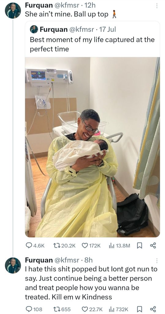 On Thursday, September 12, he took to X to write: “She ain’t mine. Ball up top.”