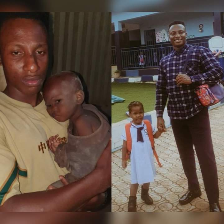 Nigerian man, Ben Kingsley Nwashala, who rescued a 2-year-old girl abandoned by the roadside in Agbani area of Enugu state in June 2022, has shared a heartwarming photo of him and the child.
