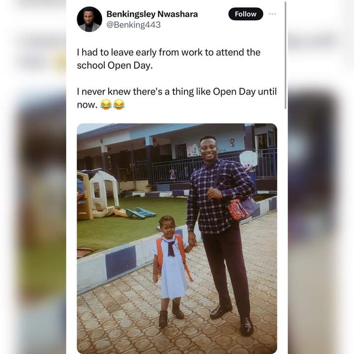 In a post shared on his Twitter handle today November 8, Nwashala who is now responsible for the little girl, shared a photo of her in her school uniform. He wrote