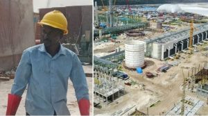 He is currently working as a helper on a site where my team and I are fabricating and erecting a Coastic Soda Storage tank for Dangote Refinery .