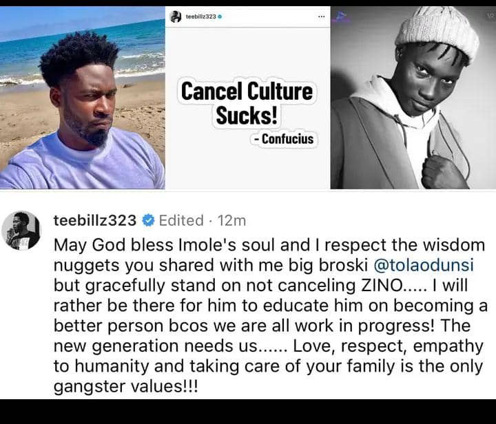 He kickstarted his now-deleted Instagram post by sharing a video of Zinoleesky singing and by extension tells Nigerians to stop canceling him because he is signed under Marlians adding that he committed no crime.