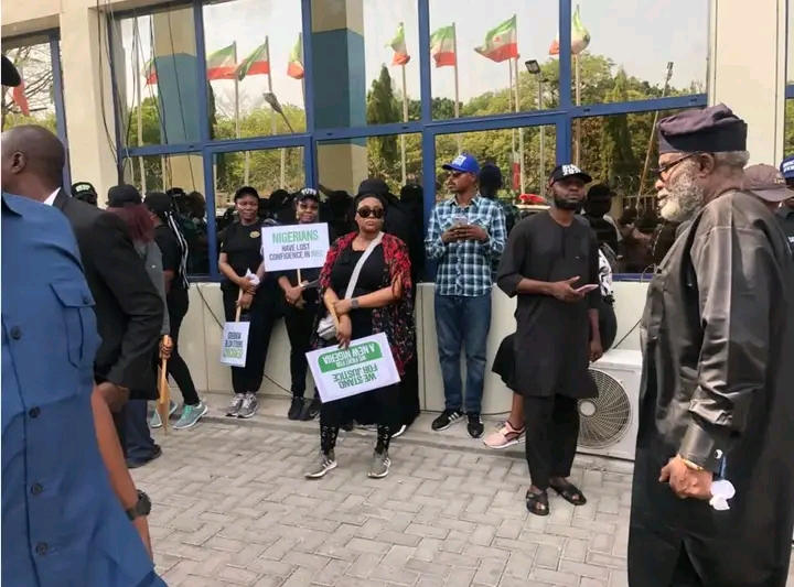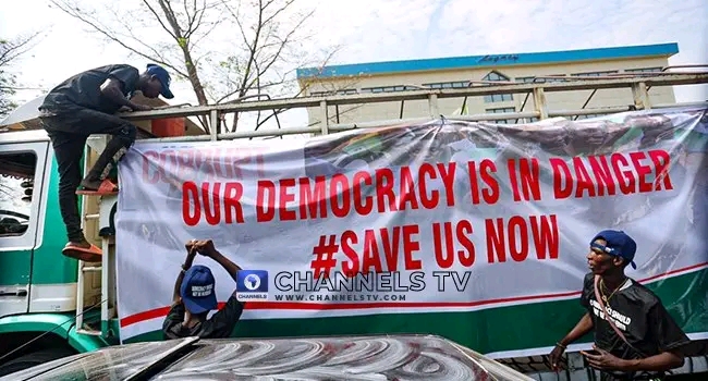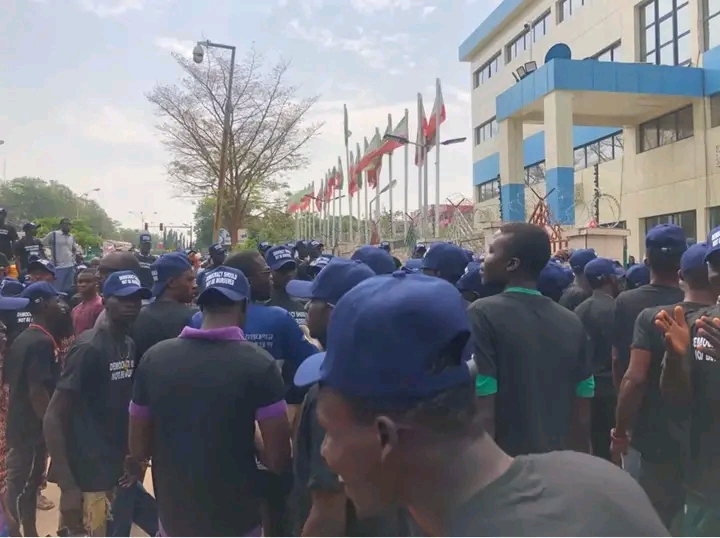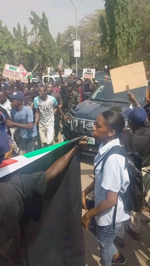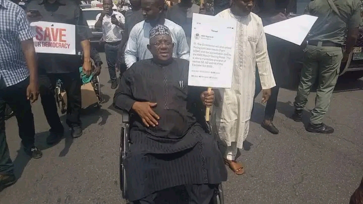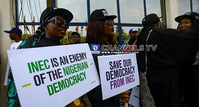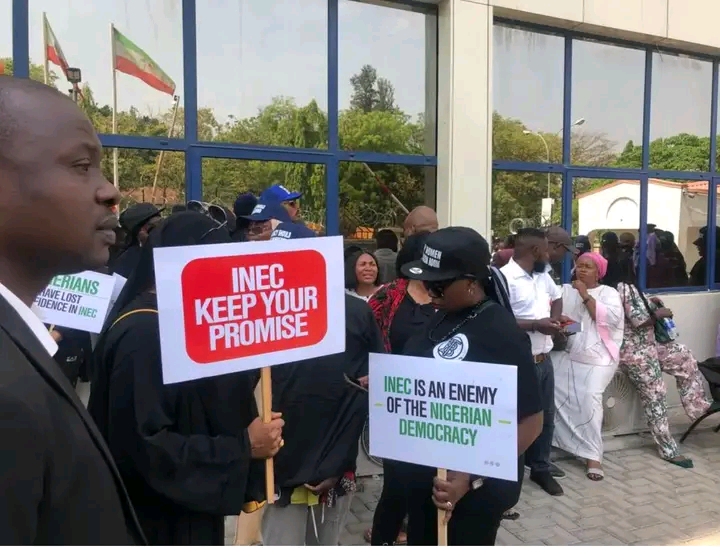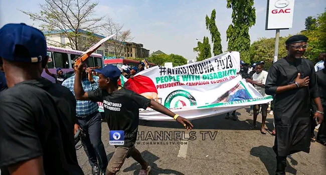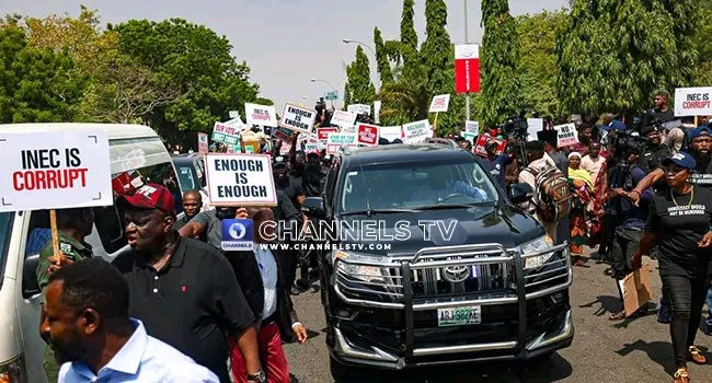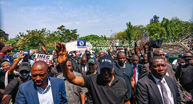 The presidential candidate of the People’s Democratic Party, Atiku Abubakar, and his running mate, Ifeanyi Okowa, are currently leading a protest today (Monday) from Legacy House to the national headquarters of the Independent National Electoral Commission in Abuja.