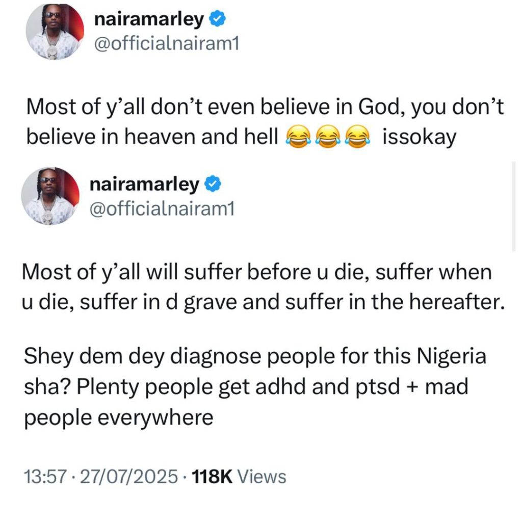 Singer Naira Marley took to his X handle this afternoon to let some things off his chest.