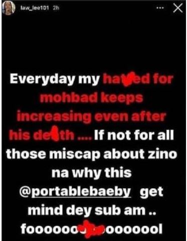 He wrote; “Everyday my hatred for mohbad keeps increasing even after his death …. If not for all those miscap about zino na why this @portablebaeby get mind dey sub am .. Fooooooooooool.”