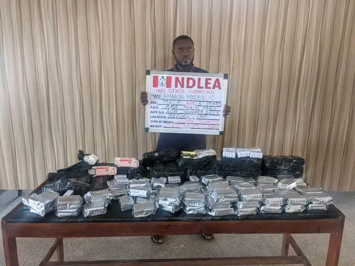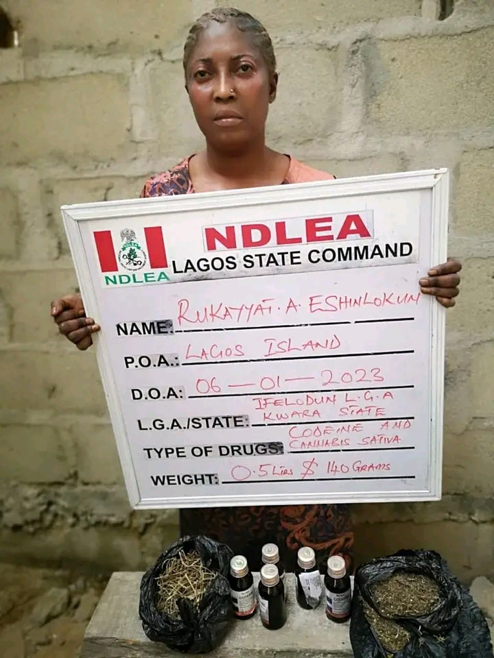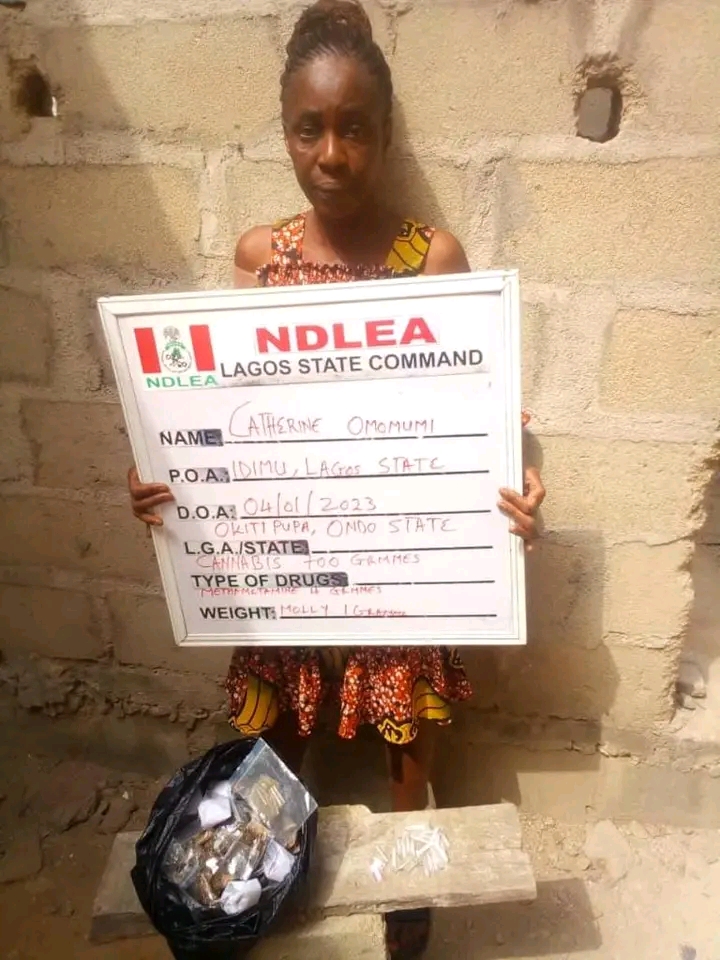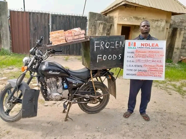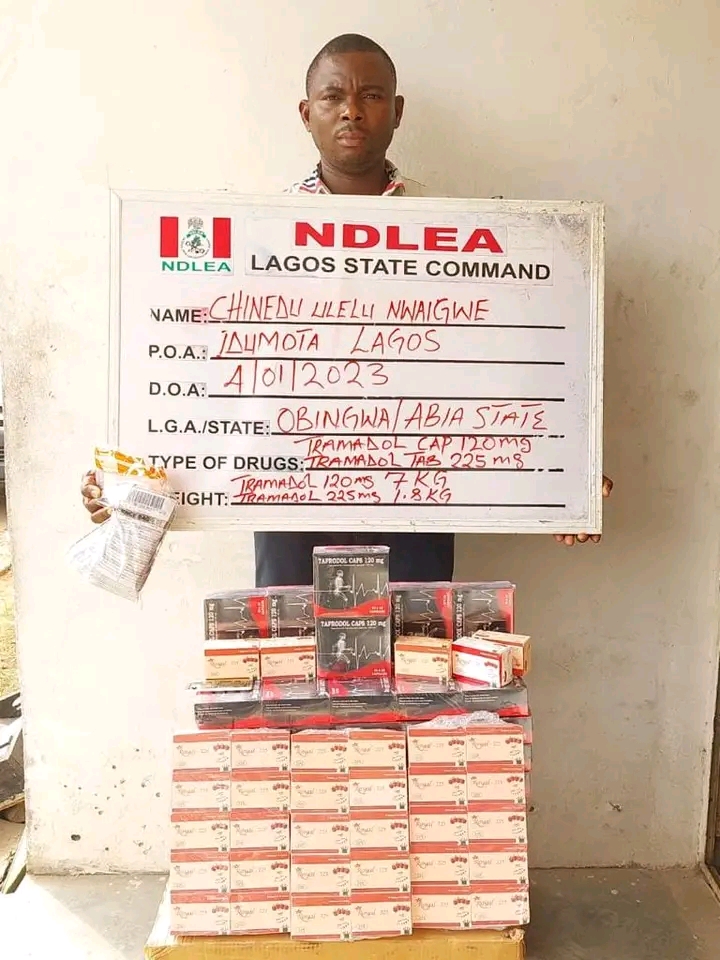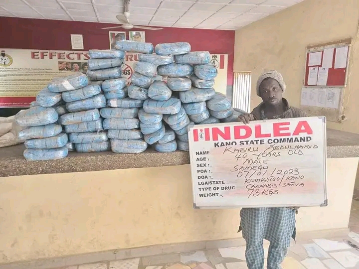 “In Kano, NDLEA operatives on Saturday 7th Jan. intercepted Kabiru Abdulhamid, 40, with 119 blocks of C/S weighing 73kgs at Semugu area, while a total of 28,400 tablets of tramadol and over 230kgs of cannabis were seized in raid operations in Festac town and Lagos Island areas of Lagos state. Some of the suspects arrested in the Lagos raids include: Rukayyat Eshinlokun; Pelumi Alejo and Banna Maina who specializes in distribution of illicit drugs disguised as a dispatch rider.