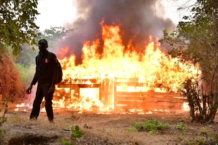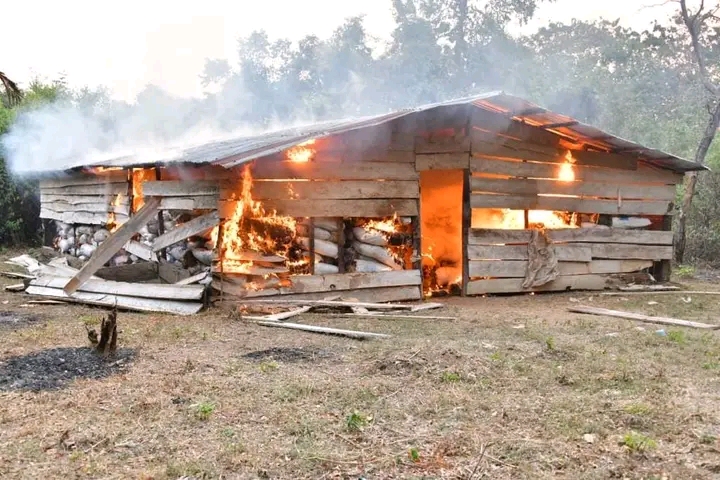 The National Drug Law Enforcement Agency has razed warehouses containing cannabis inside the Opuje Forest, Edo State.