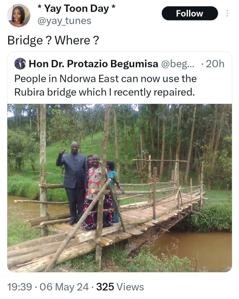 A Ugandan Senator took to X to proudly show off the bridge he repaired for his constituents.