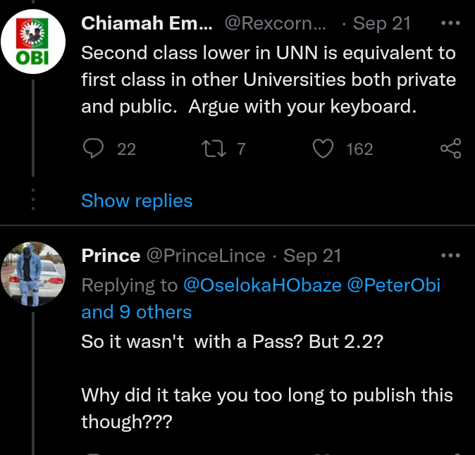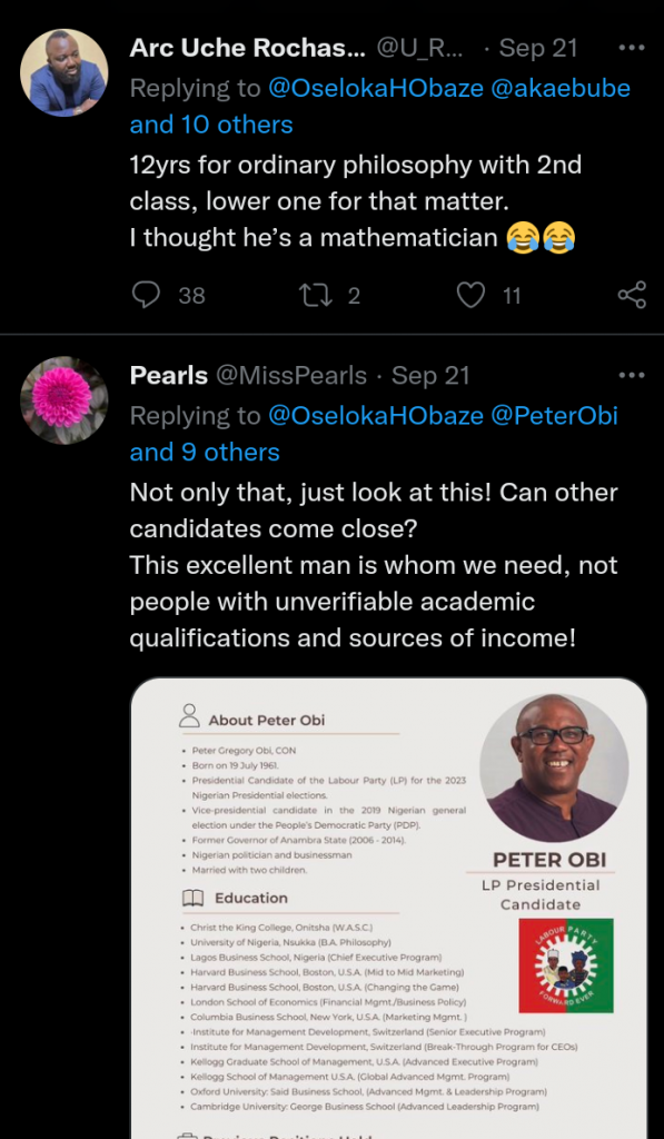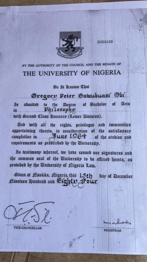 Oseloka H. Obaze, an aide to Peter Obi, published the former Anambra State governor’s university degree.