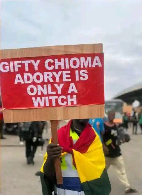 The content on the placards alleged that Nigerian women are engaging in prostitution in their country and Nigerian men are kidnapping and k!lling their people.