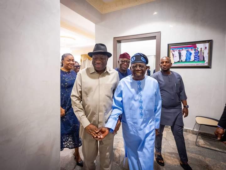 Asiwaju Bola Tinubu, Presidential Candidate of the ruling All Progressives Congress (APC), hosted ex-President Goodluck Jonathan and representatives of the ECOWAS Election Monitoring Team at his Abuja residence on Tuesday.