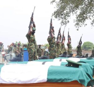 At the different funeral service offered by the Chaplain of Protestant 401 Special Forces Brigade, Major Ibrahim Mavisky, and the Imam of the same Brigade, Captain Aliyu Bashir, the fallen heroes were described as peacemakers as tributes flowed freely.