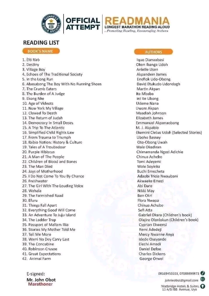 A Nigerian man, John Obot, is attempting to break the Guinness World Record for ‘The Longest Marathon Reading Aloud,’ by an individual.