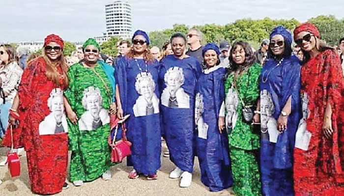 However, beyond the main ceremony, many people bade farewell to the queen in their own ways. Not one to be founding in things of this nature, some Nigerian women wore uniform batik-patterned outfits, popularly called aso ebi, which bore the image of the queen.