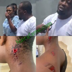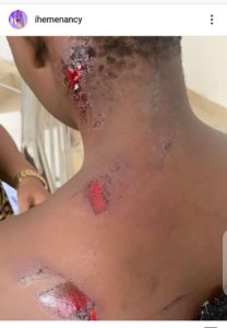 “This happened this morning at Badore where we are currently filming., this house girl from Calabar was brutally beaten up by the man of the house because she refused to have sex with him…We have arrested him but don’t want him to go free from this atrocity..
