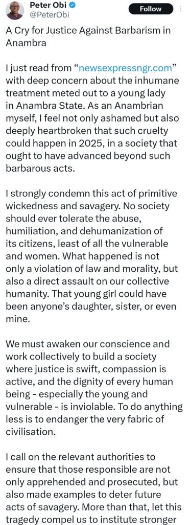 He continued: “As an Anambrian myself, I feel not only ashamed but also deeply heartbroken that such cruelty could happen in 2025, in a society that ought to have advanced beyond such barbarous acts.