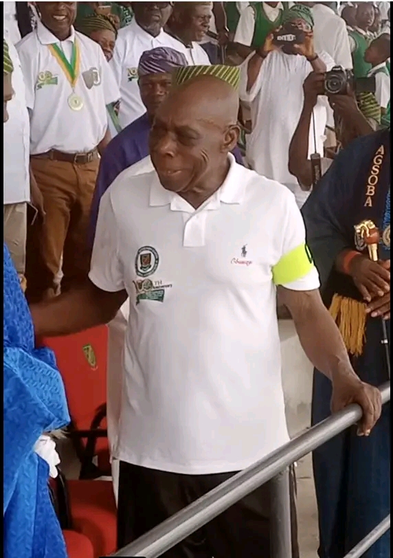 Former Nigerian president, Olusegun Obasanjo, on Monday led the alumni football team of the Baptist Boys High School Abeokuta as captain in a football match against the teachers of the school.