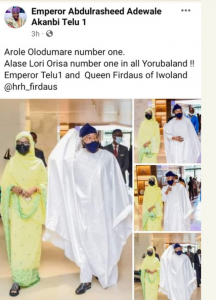 could be recalled that His Royal Majesty Oluwo of Iwo Kingdom, Oba AbdulRasheed Akanni got married to a princess of Kano last month, March 20th 2021 at the palace in Iwo Osun state.