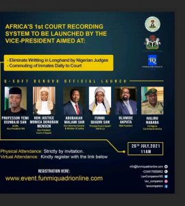 Vice President Yemi Osinbajo is breaking new frontier in the judiciary when he launches Africa’s first court recording.