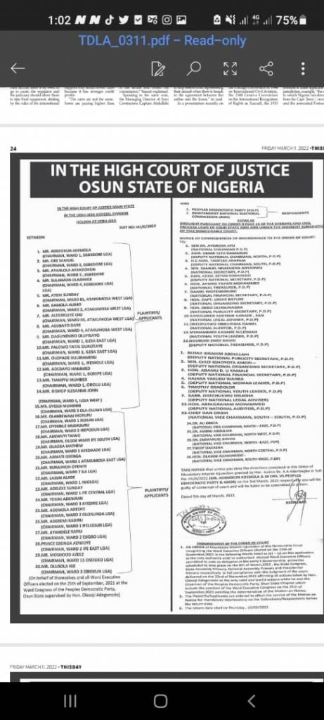 Presided over by Justice Adeyinka Aderibigbe, the court in an Order of Mandatory Interim Injunction, averred that delegates that voted for Babayemi, did so in compliant with the court judgement of 22nd November,2021 and Order of Mandatory Interim Injunction of 3rd March,2022, affirming the 215 Wards Executive Officers elected then as the authentic and authorized Ward Executive Officers permitted to vote as delegates at the party governorship primaries.