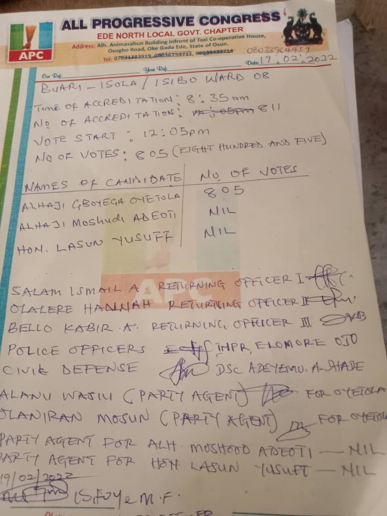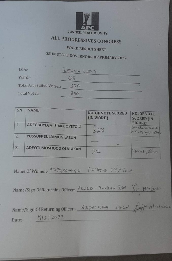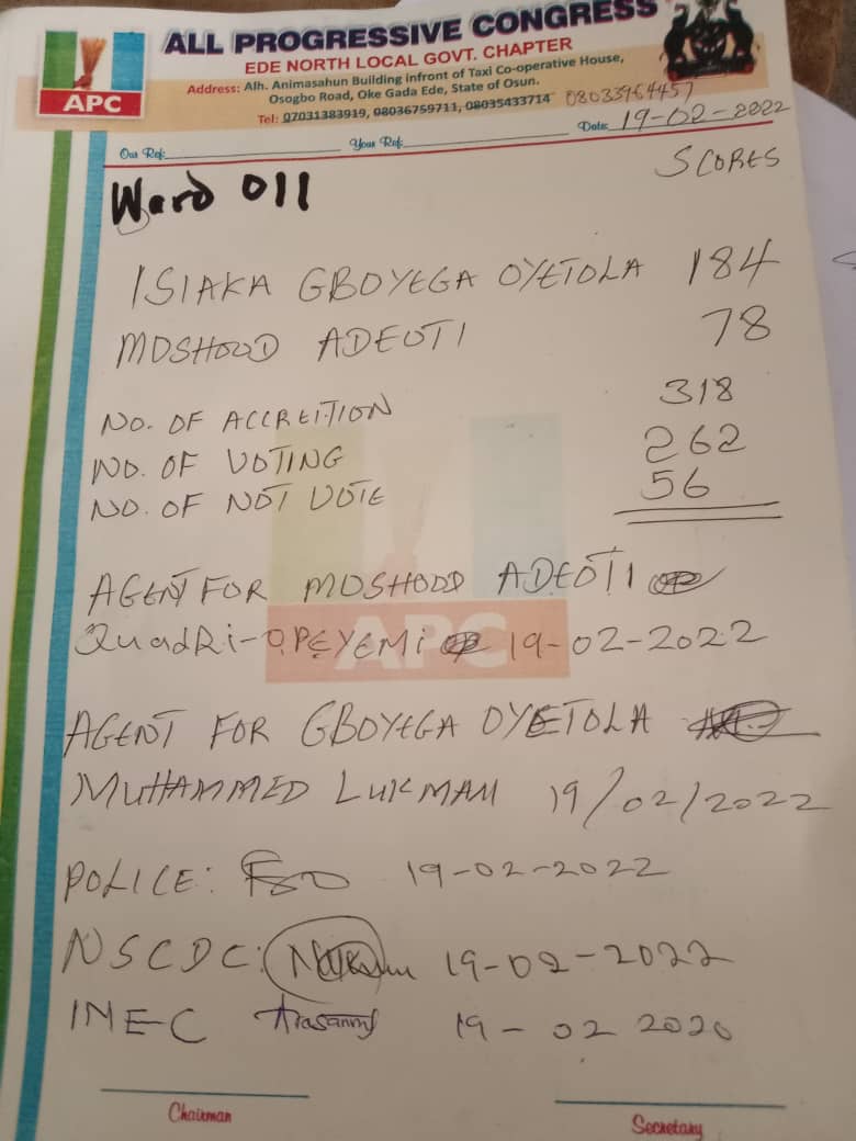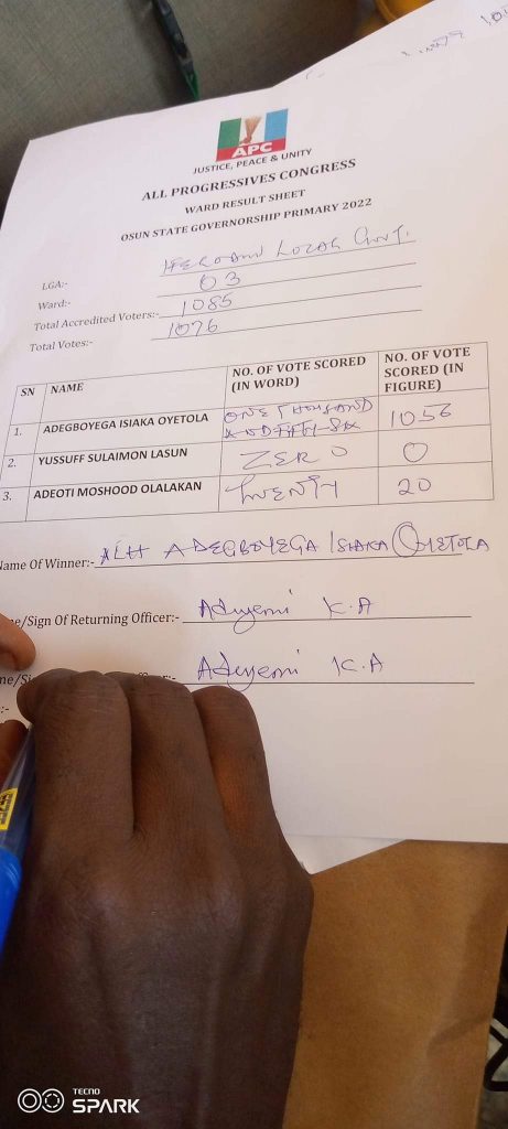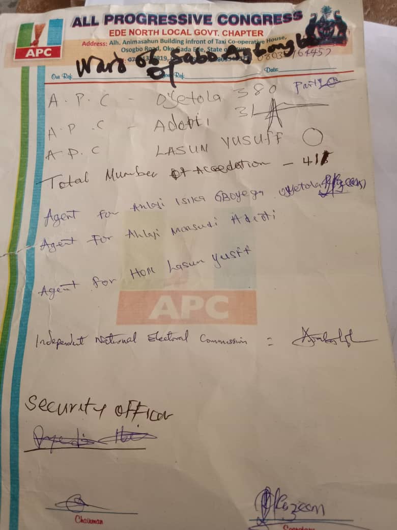 Some Results have emerged from the ongoing Osun State All Progressives Congress (APC) governorship primary election AMILOADED reports.