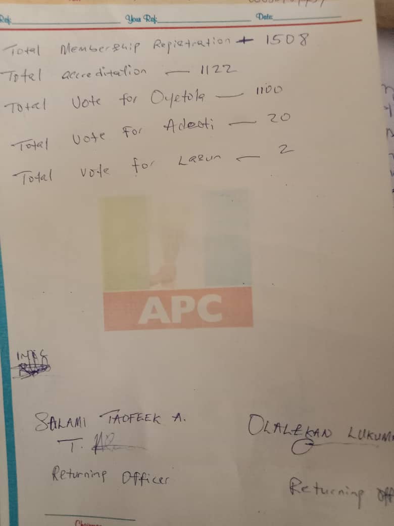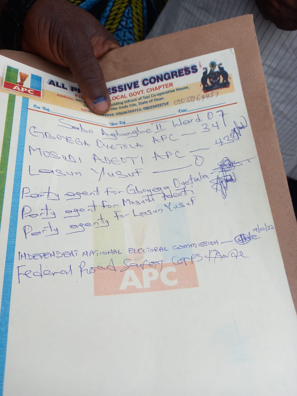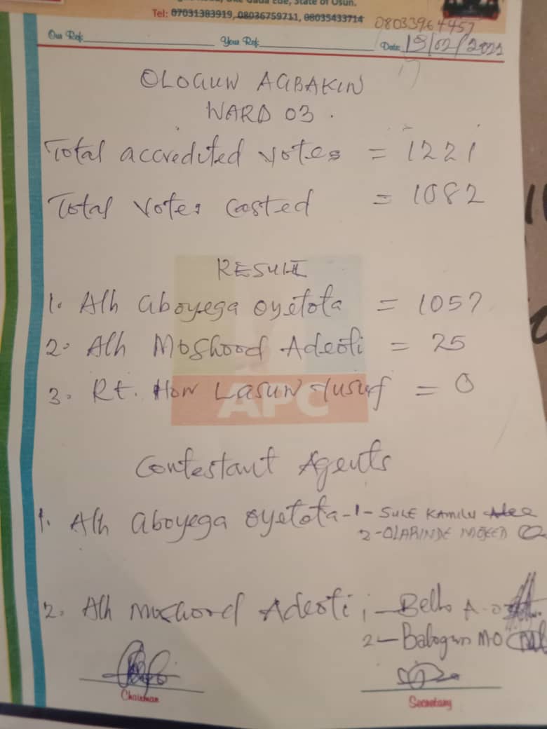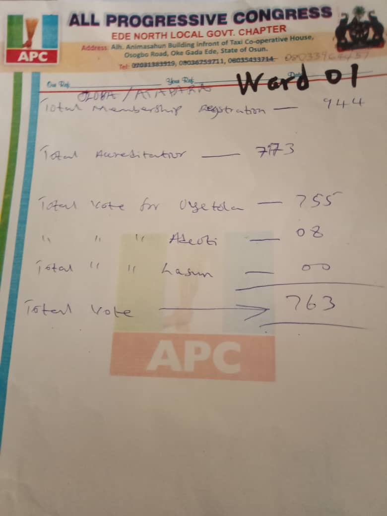 However, correspondents of AMILOADED, who went round the state, have gathered some results from the APC gubernatorial primary election